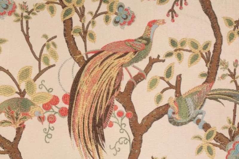 Grand Phoenix Jewel Green Red Blue Bird Floral Tree Tempo Fabric