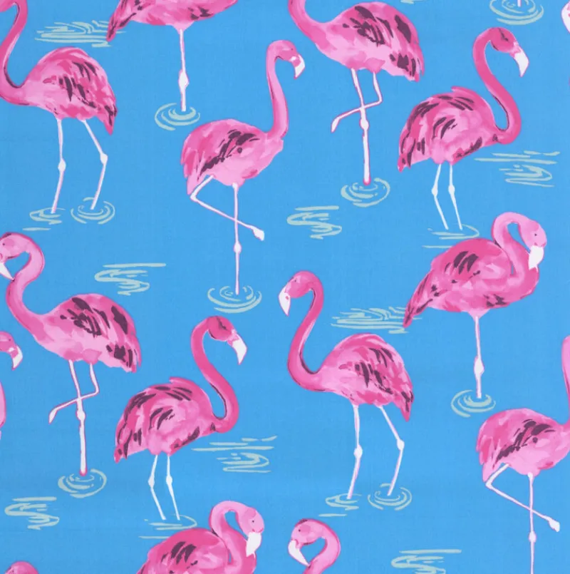OD Flamingo Turquoise Bright Blue Tropical Flamingo Outdoor Tempo Fabric