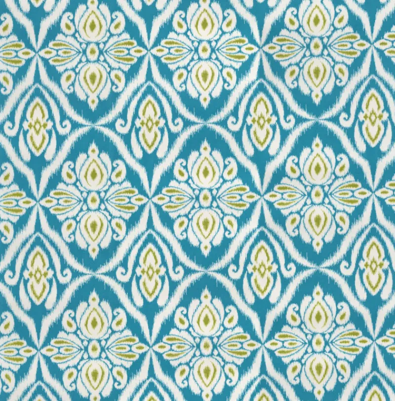 OD Jaipur Peacock Blue Green Damask Outdoor Tempo Fabric