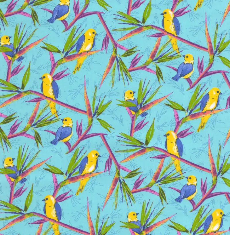 OD Paradise Aqua Light Blue Floral Bird Branch Outdoor Tempo Fabric