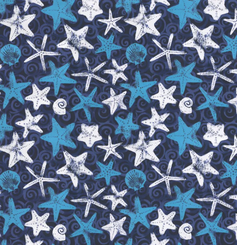 OD Starfish Indigo Dark Blue Nautical Starfish Outdoor Tempo Fabric