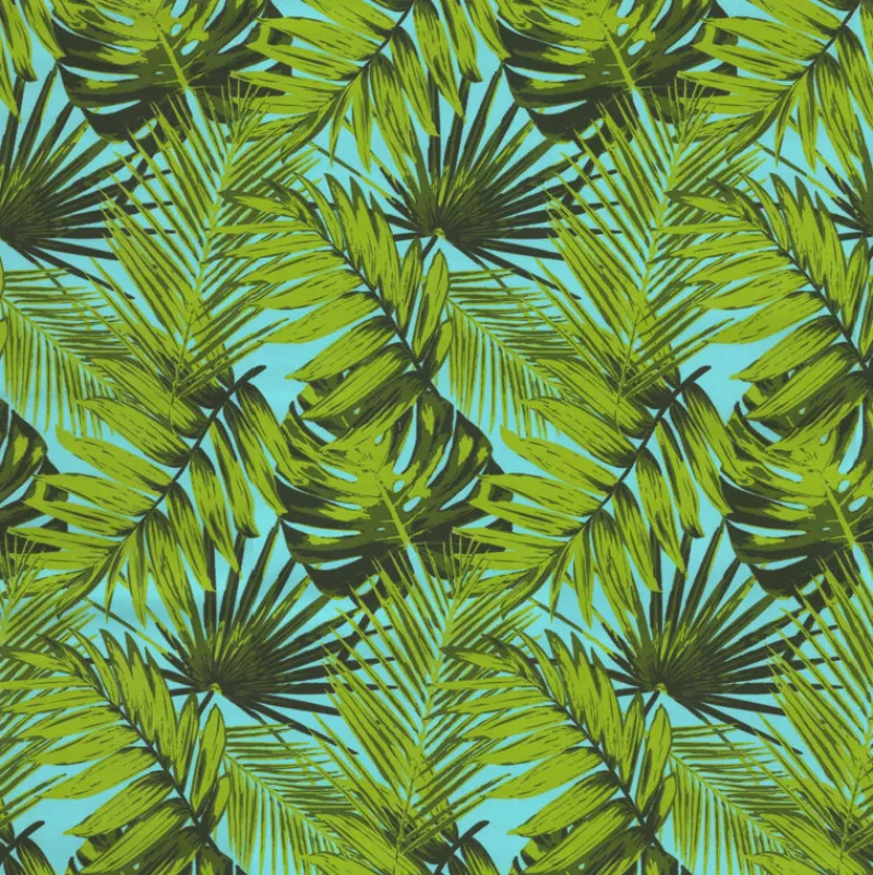 OD Tropica Aruba Bright Blue Green Tropical Palm Leaves Outdoor Tempo Fabric