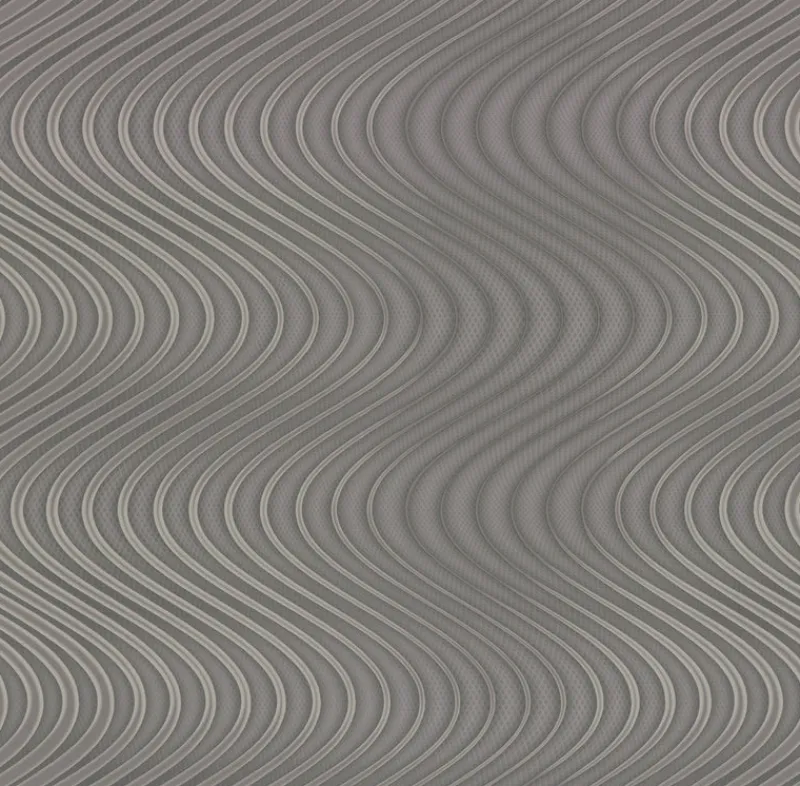 Undulating ribbons in minute diamond texture alternate with smooth lines creating a study in fluidity, a design like gleaming liquid; it’s Ocean Swell Wallpaper.