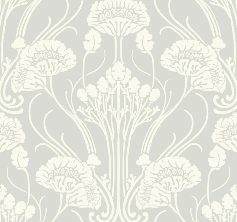 A gigantic poppy print in sculpted ink manufactured on a vintage press, Nouveau Damask Wallpaper celebrates the zenith of the art nouveau movement and the emerging art deco form.