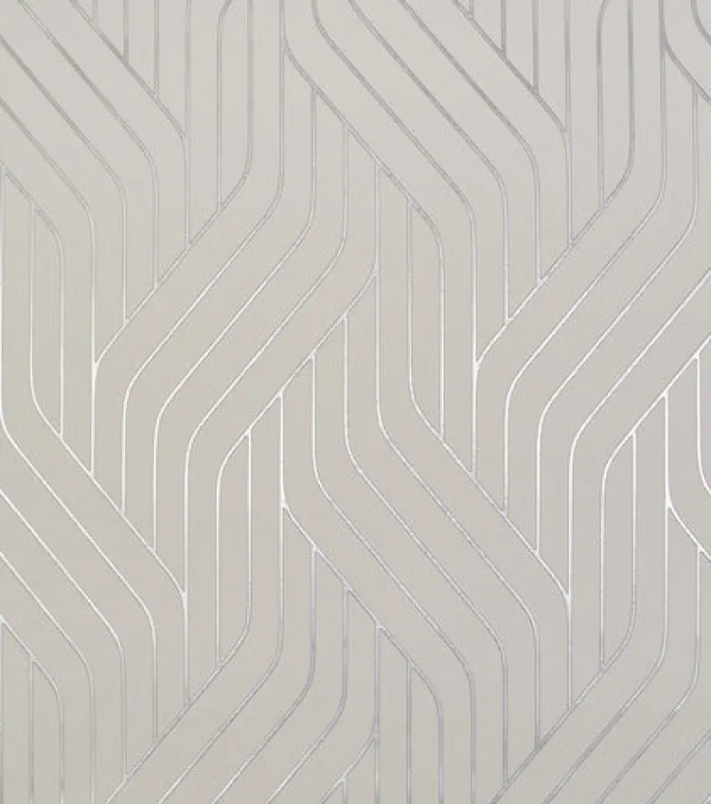 Featuring swaths of parallel lines veering off in unexptected directions, Antonina Vella Ebb and Flow Wallpaper creates a shining contemporary pattern against a solid field.