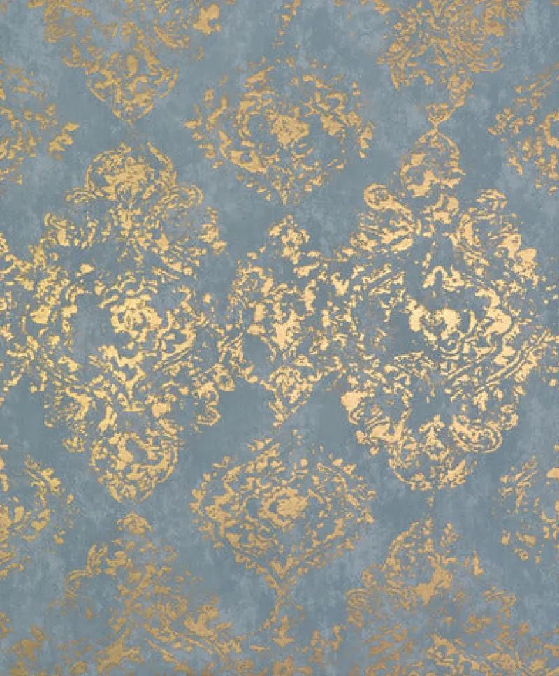 Inspired by a classic motif in a contemporary mode, Antonina Vella Stargazer Wallpaper features a shimmering damask design that materializes like a phantom in precious metal on a misty field.