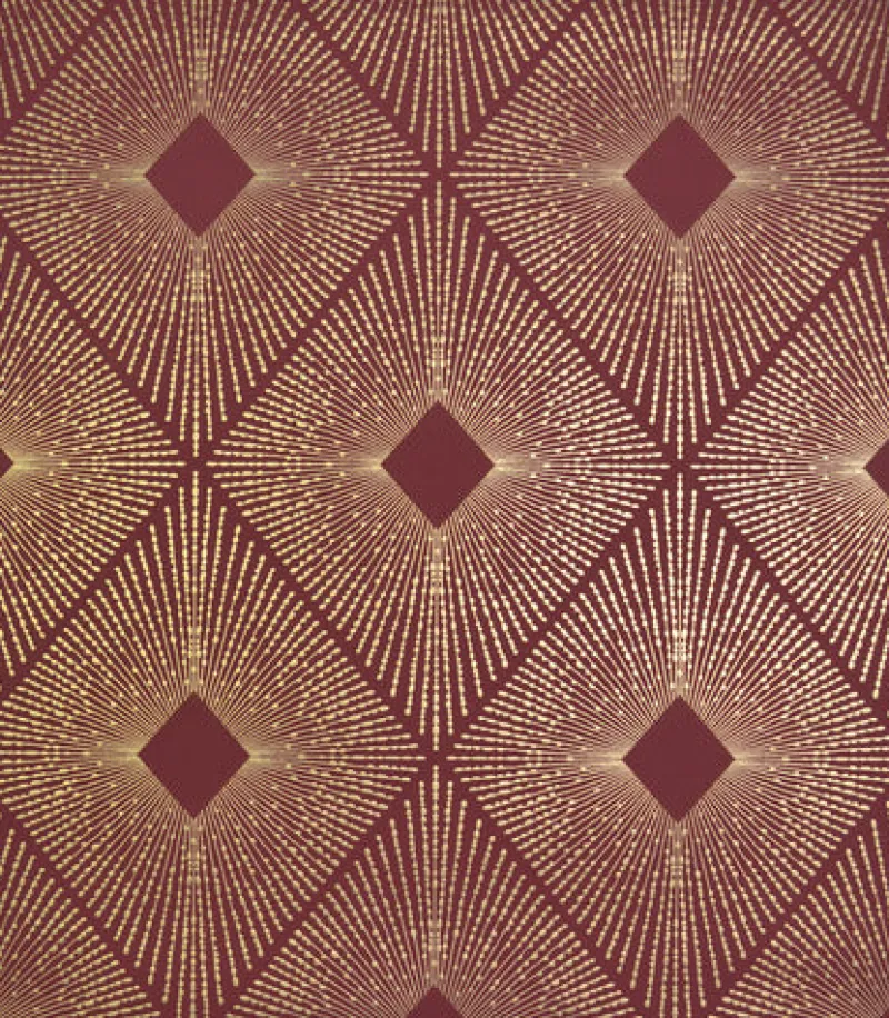 Radiating beams of metal burst forth from a dismond shape, Antonina Vella Harlowe Wallpaper forms a shimmering aura against contrasting color.