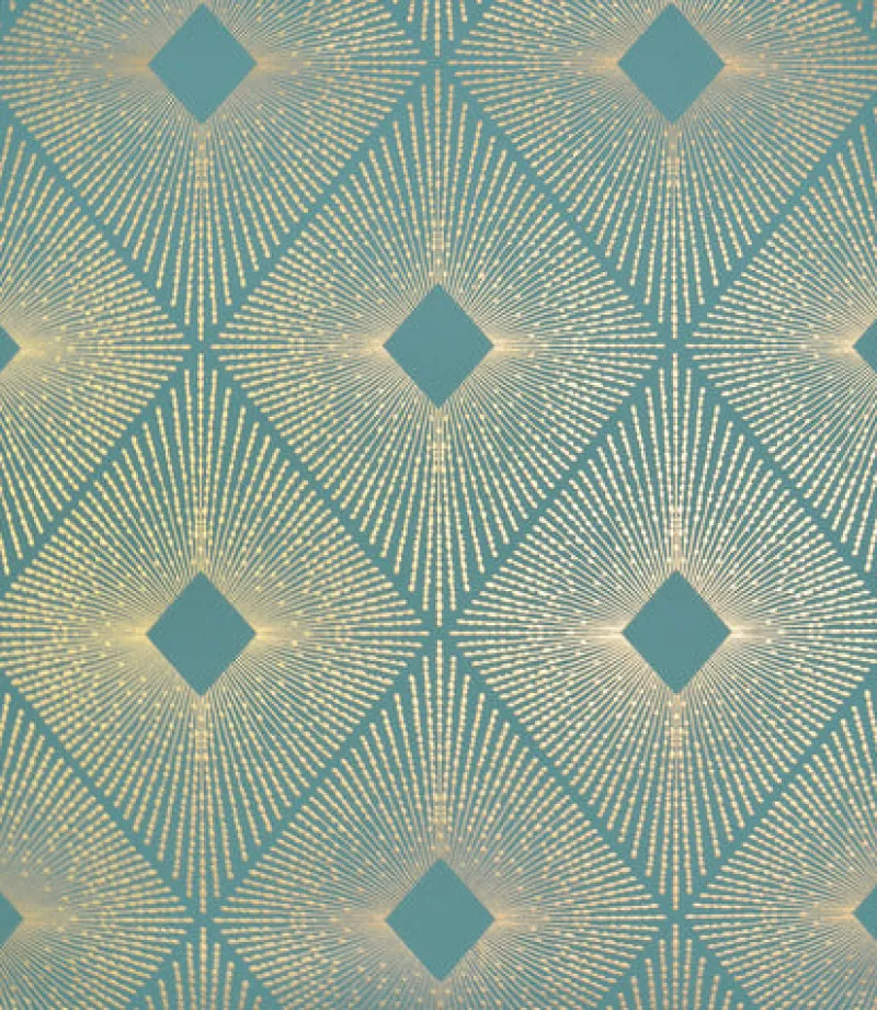 Radiating beams of metal burst forth from a dismond shape, Antonina Vella Harlowe Wallpaper forms a shimmering aura against contrasting color.