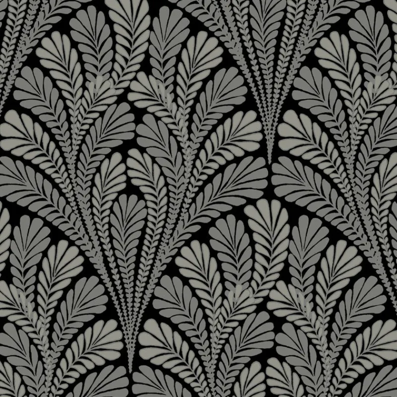 Fan shaped feathery pinnate leaves define the graceful arch of pattern Shell Damask, accented by the addition of modern metallic and pearlescence.