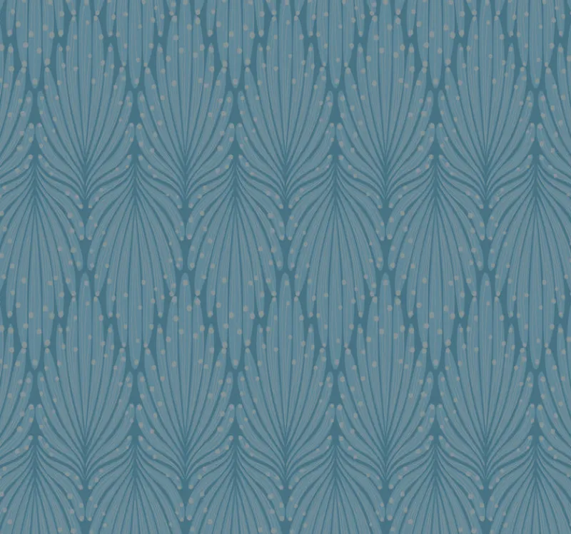 A touch of fantasy for the sophisticate, this pattern features a feathery motif, pointing upward or down, and incorporates metallic dots teathered with strings. This is Caf? Society Wallpaper.
