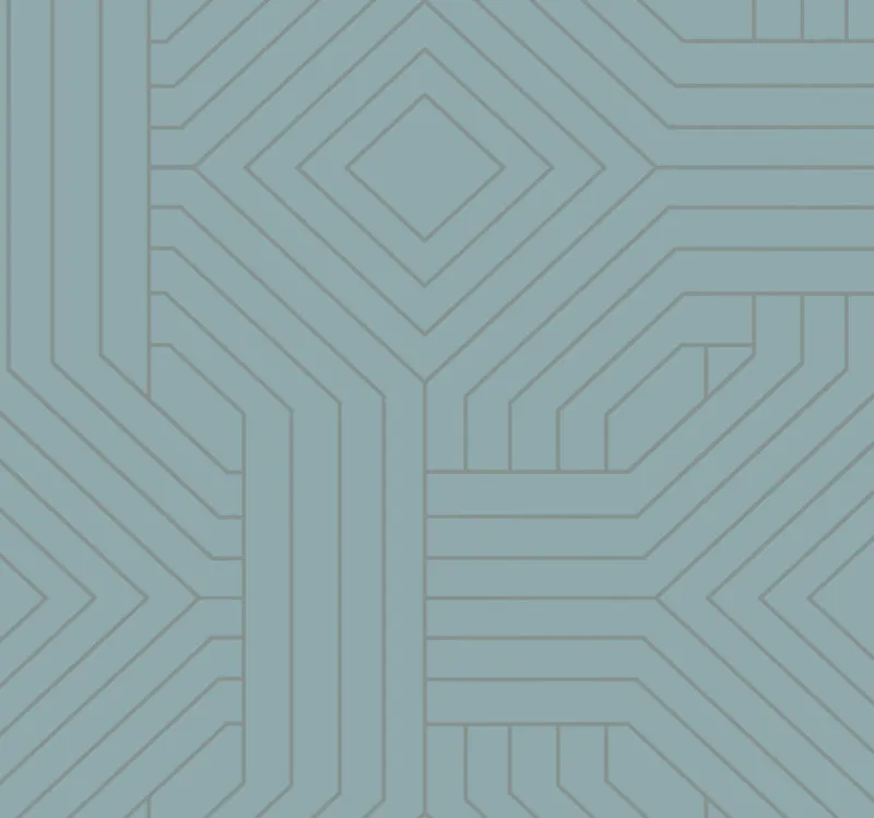 A network of gleaming metallic lines running vertically, diagonally, and horizontally forms a maze on a field of contrasting matte paper. This is Diverging Diamonds Wallpaper.
