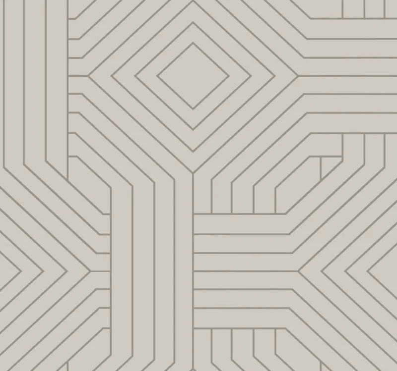 A network of gleaming metallic lines running vertically, diagonally, and horizontally forms a maze on a field of contrasting matte paper. This is Diverging Diamonds Wallpaper.