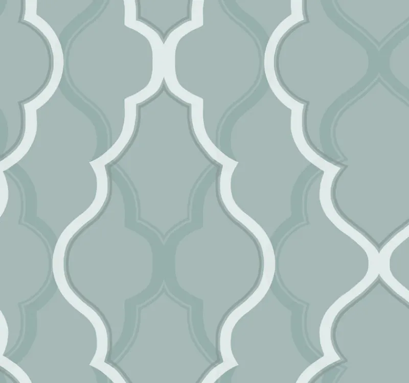 Large scale and bold with arabesque designs and metallic tracery in the foreground; soft shadows repeat the design in the background. This is Double Diamond, a strikingcontemporary wallpaper.