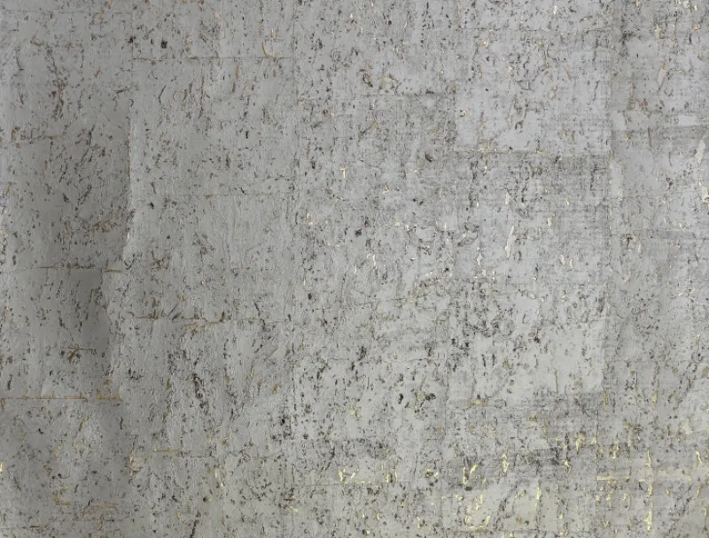 Shiny silver grey covers this cork wallpaper for a cool natural slightly textured look.