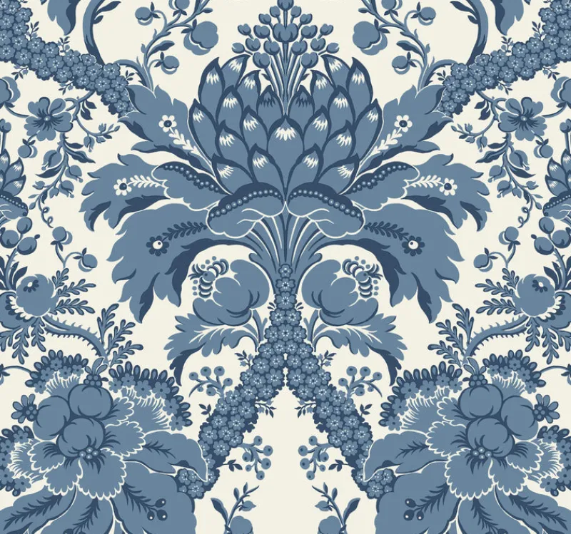 Beautiful, lavish vines, vegetation, and blossoms, inspired by a French jacquard fabric, create a garden of delights edged with touches of burnished metallic in pattern French Artichoke Damask.