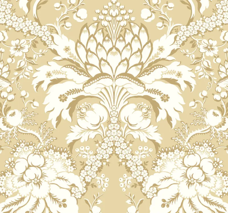 Beautiful, lavish vines, vegetation, and blossoms, inspired by a French jacquard fabric, create a garden of delights edged with touches of burnished metallic in pattern French Artichoke Damask.