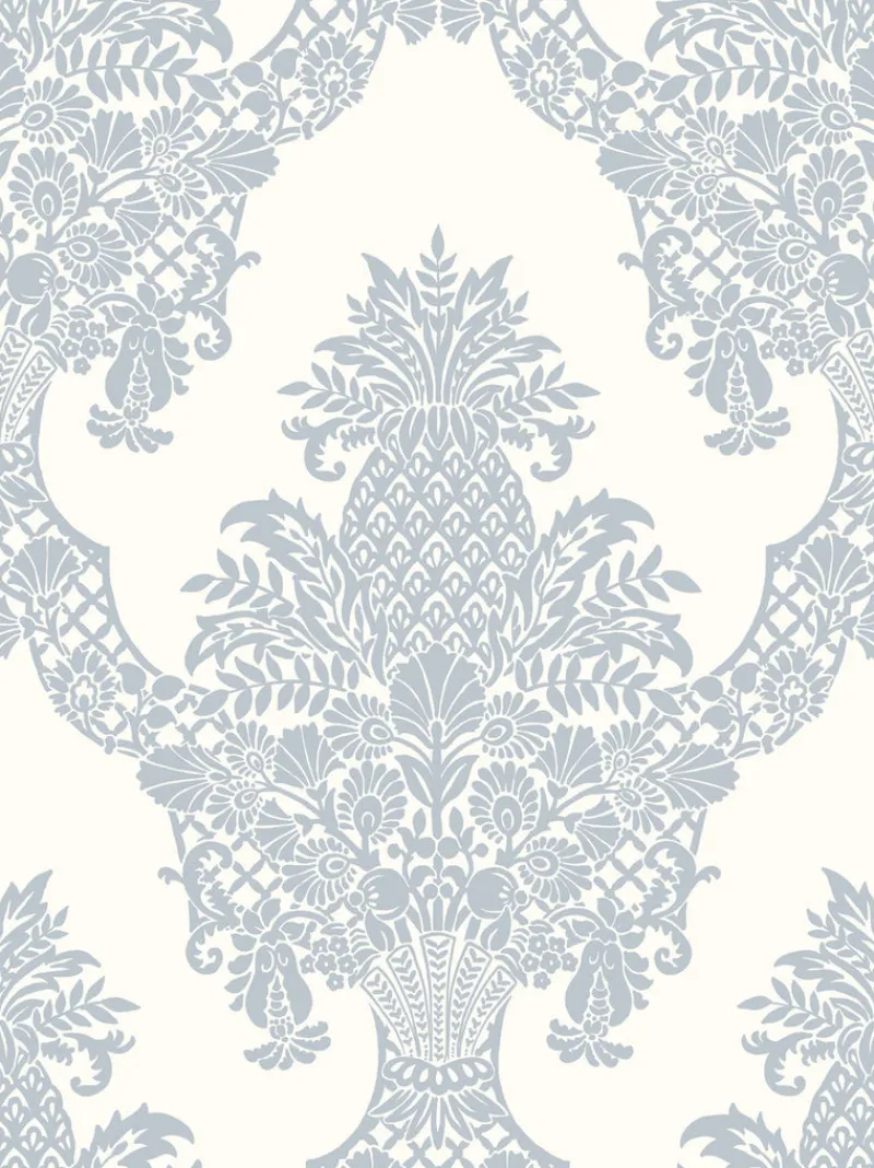 Ultimate symbol of hospitality, the pineapple commands the center of pattern Pineapple Plantation Damask, imbued with all the design elegance associated with extravagance, and luxury.