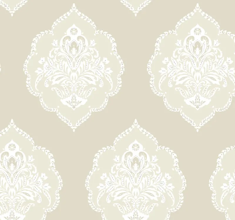 The leafy medallion crests of a signet ring act as an inspiration for pattern Signet Medallion Damask.
