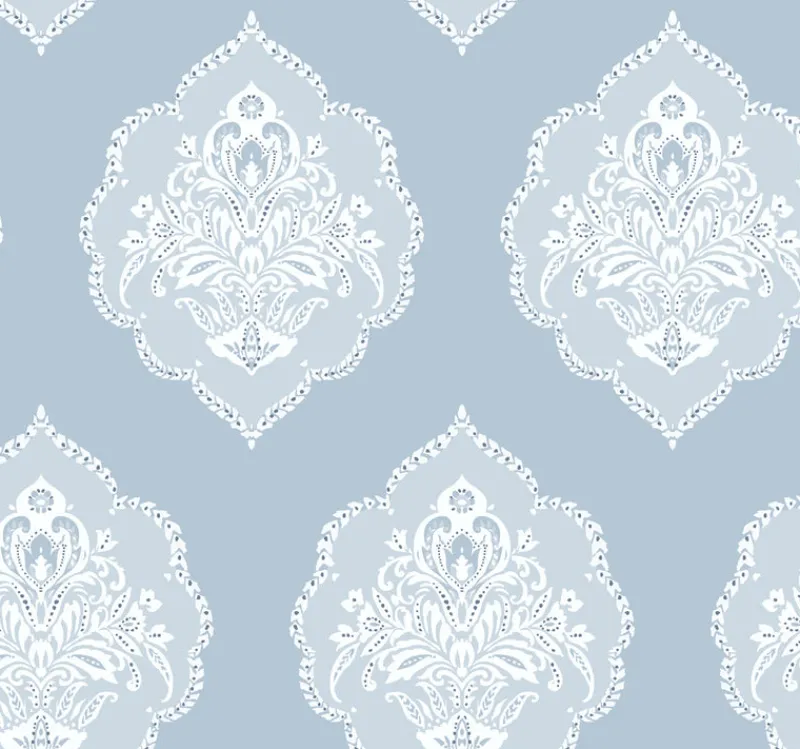 The leafy medallion crests of a signet ring act as an inspiration for pattern Signet Medallion Damask.