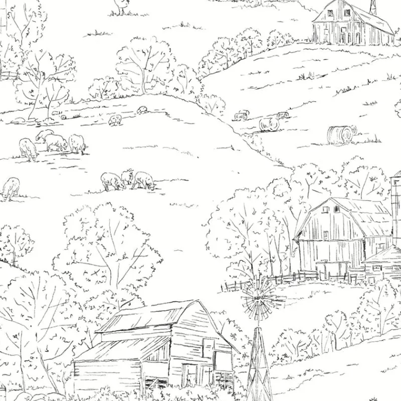 FH4031 Black/White Pasture Toile Wallpaper