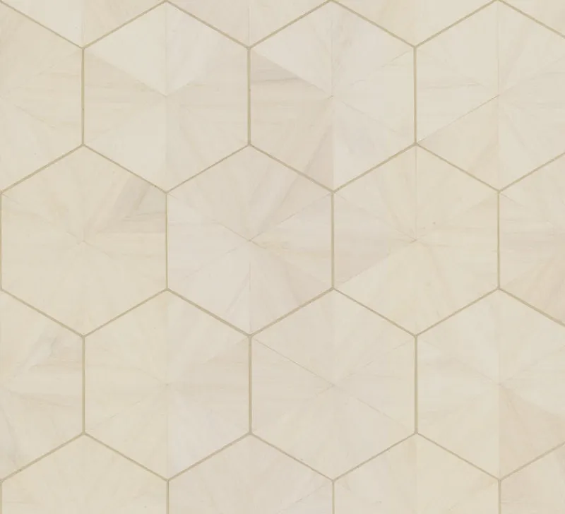 Real wood pattern Hexagram Wood Veneer is a hand inlaid six-sided geometric on metallic ground.