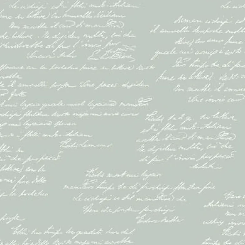 Cursive longhand script runs horizontally across a matte sophisticated color in this distinctive textural wallcovering created with raised, sculptural inks. Available in 5 colorways: white script on aqua grey (MH1609), white script on light grey (MH1608), white script on dark grey (MH1610), white script on black (MH1611) and black script on white (MH1612).