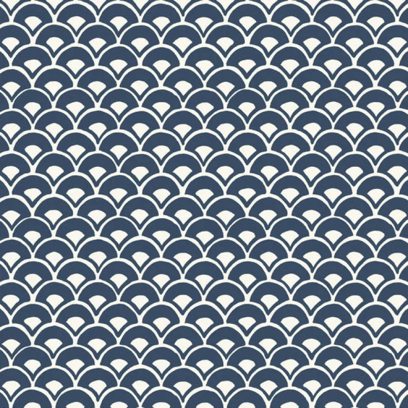 Playfully stacked scallop shells create a vibrant, contemporary classic, rendered in a hand painted style.