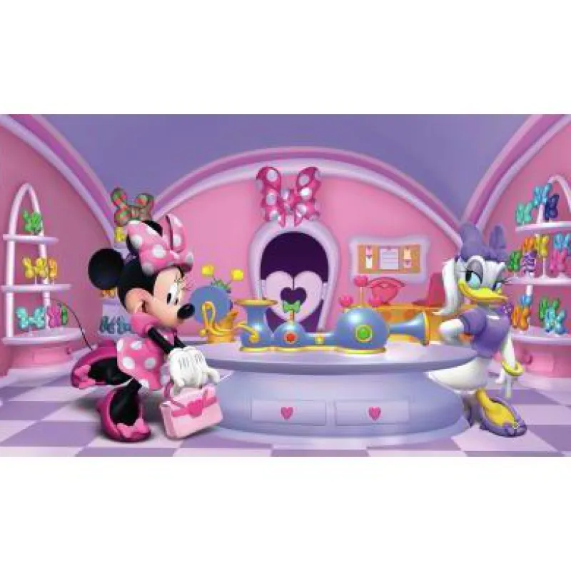 This bright, pre-pasted full size wall mural of Minnie Mouse shows off a girly, feminine side and is a cute addition to any girls bedroom.