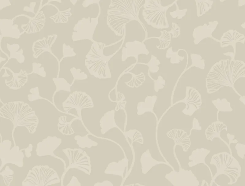 Artfully sculpted leaves meander across a solid color background, the raised texture in counterpoint to the smooth field; it’s lovely Gingko Trail.