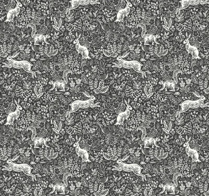 Rifle Paper Co.?s Fable print is inspired by classic tales, and features illustrated wood-block inspired woodland creatures among a forest of leaves and flowers.