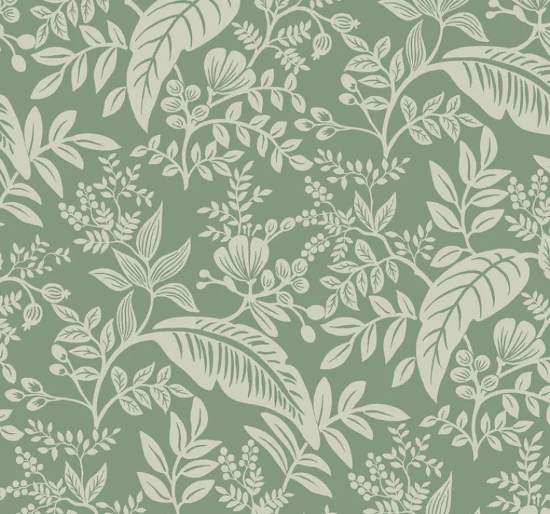 Tropical leaves and greenery are layered to create Canopy, a lush, two color print from Rifle Paper Co. that is both modern and sophisticated.