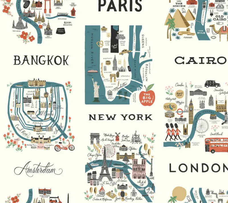 Travel the world without leaving home with this grid of illustrated City Maps from Rifle Paper Co., featuring our favorite destinations from New York to Tokyo.