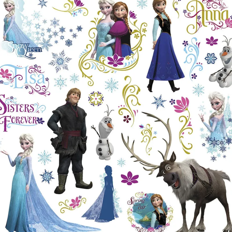 Glittery wall decals bring Elsa, Anna, Olaf, Kristoff, Sven, and more into your room for fun creativity that is completely removeable!