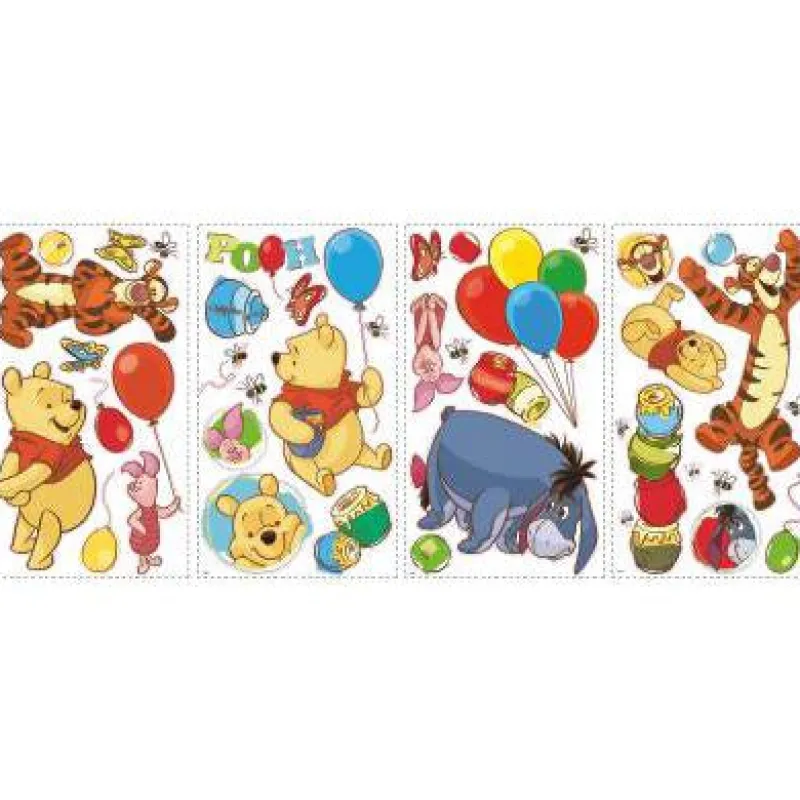 Little wall decals featuring Winnie the Pooh, Tigger, Eeyore, Piglet, and everyone else is an adorable addition to a kids bedroom, and is completely removeable.