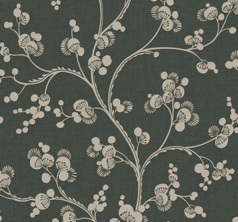 With a bit of whimsey, this capricious vision of a floral vine lived only in the artist’s imagination until now. Dalhia Trail Wallpaper features white or creamy foliage against a slightly textured colored field that looks like woven fabric.