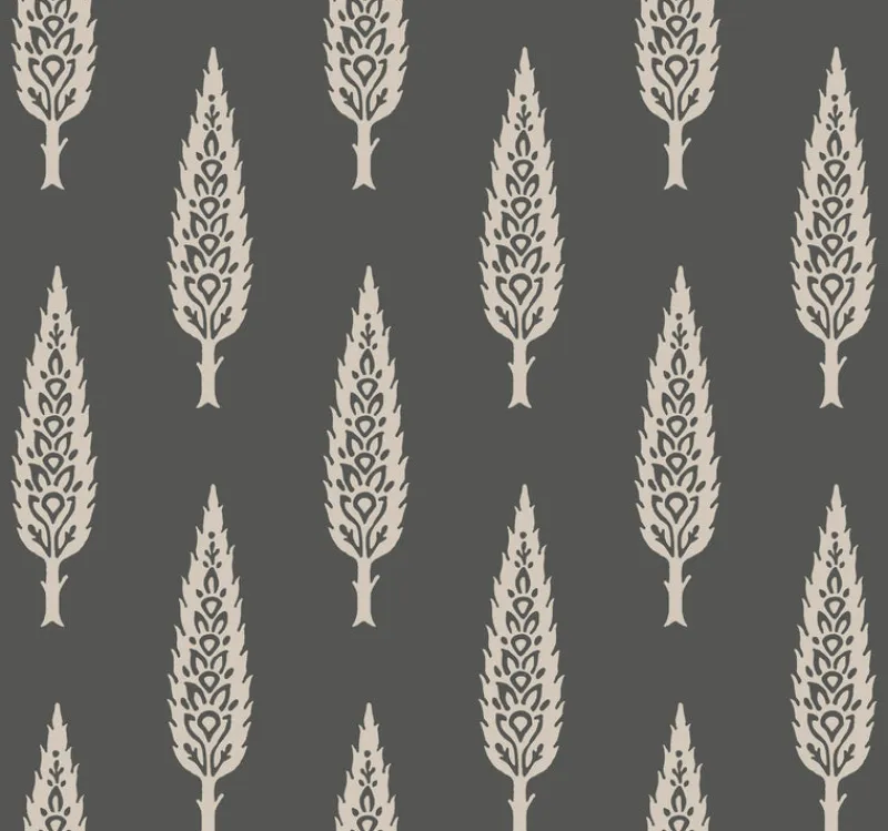 A bold but simple wallpaper, this medium scale design represents the Juniper Tree for which it is named. The teardrop motif is shown against a pristine contrasting background and symbolizes “evergreen”.