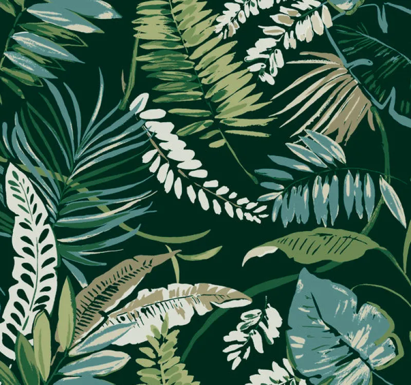 The colorful brushstrokes and palm fronds of pattern Tropical Toss bring a fresh new feeling to these whimsical jungle leaves.