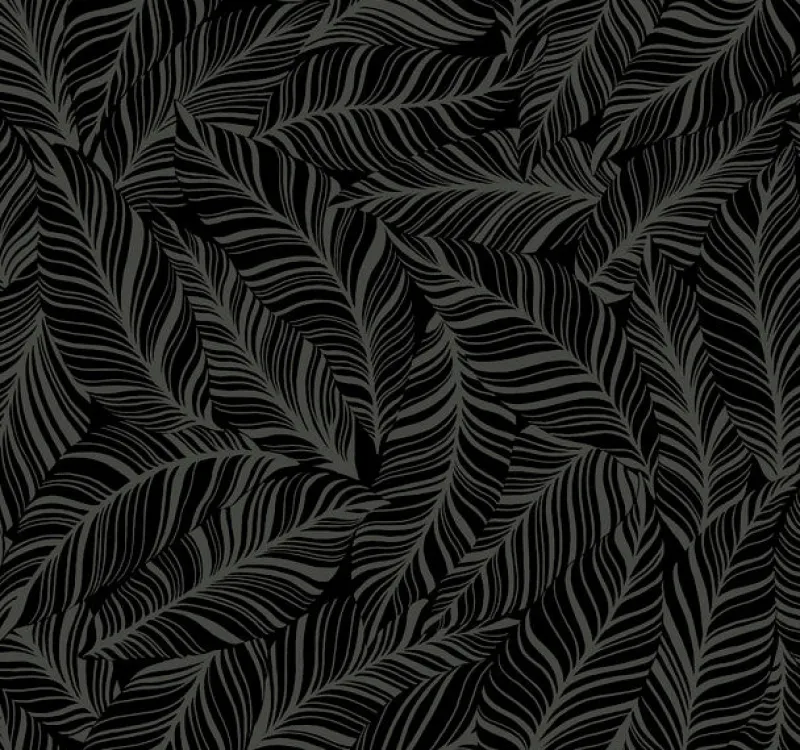 Tightly packed palm leaves feather and curl in allover pattern Rainforest Canopy, creating a modern, zebra stripe feel.