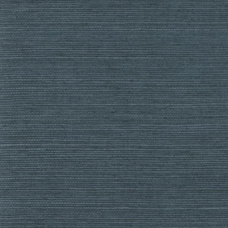 Navy blue color gives natural texture a faux organic element in this grasscloth wallpaper.