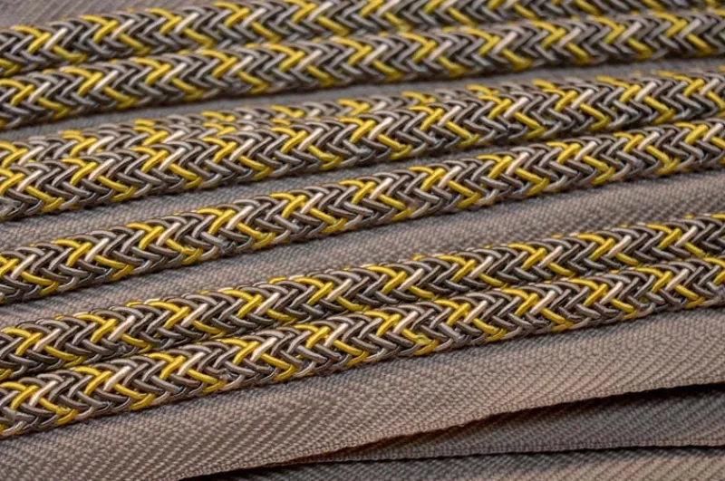 BC10002 11/10 Cord is a cool neutral taupey grey and golden yellow 1/4 inch decorative lip cord trim from Bomar at The Fabric Co.