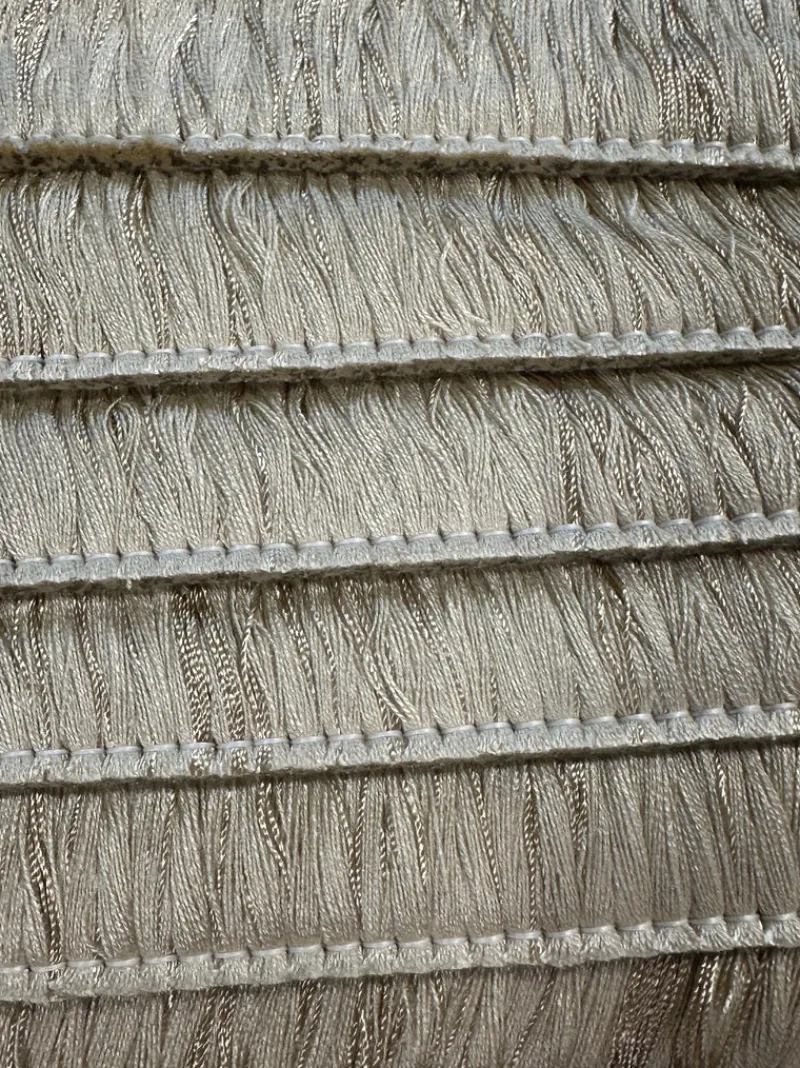 Add a pop of color with our BF4018 24 Champagin Brush Fringe from Belagio! This hot pink brush fringe is sure to liven up any room or project with its vibrant hue. Bring a touch of playfulness and fun to your decor with this unique trim.