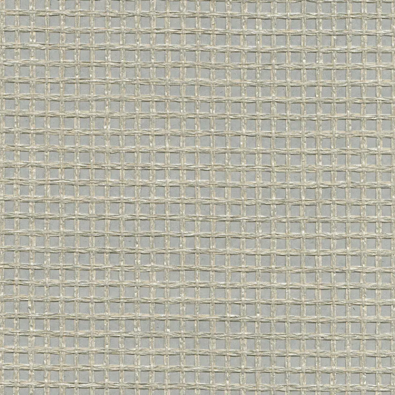 Woven paper is glazed with a subtle silver metallic wash. The open style weave shows a grey background. Wanchai is an unpasted, grasscloth wallpaper.