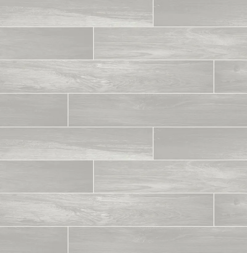 Sleek and clean, this tiled wood look is excellent for creating a modern look. The smooth light gray faux wood has a sleek and modern feel that is perfect for creating a contemporary styled room. Nika is an unpasted, non woven wallpaper.