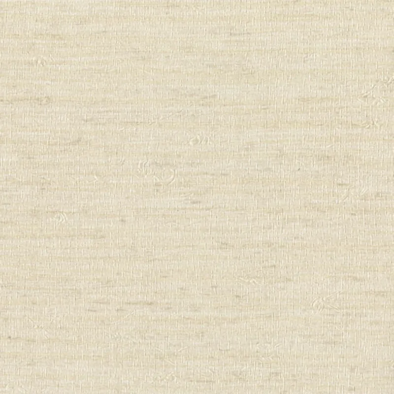 This texture creates a subtle grasscloth effect. The soft cream color has a pearl sheen that reflects light and warmth into a room. Everest is an unpasted, fabric backed vinyl wallpaper.