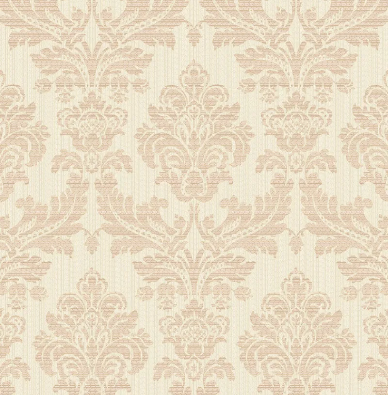 With flowering rose gold damasks and metallic undertones, this luxurious wallpaper has a chic style. White and beige raised inks create a stria-texture effect. Piers is an unpasted, non woven wallpaper.