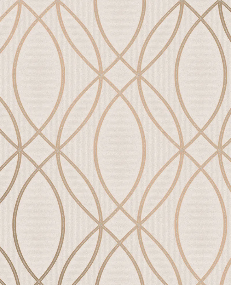 Add movement to walls with this hypnotizing geometric lattice print. Its rose gold hue effortlessly complements a textured, neutral background. Lisandro is an unpasted, vinyl wallpaper.