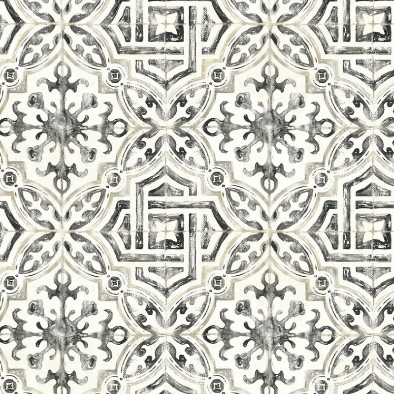 A palette of black and off-white hues adds a classic touch to this faux tile wallpaper. Distressed accented and a hand painted effect combine for a globally inspired look. Sonoma is a prepasted, non woven blend wallpaper. Pattern 2904-12331 could make a lovely and charming addition to not only your kitchen or powder room, but any room in your home!