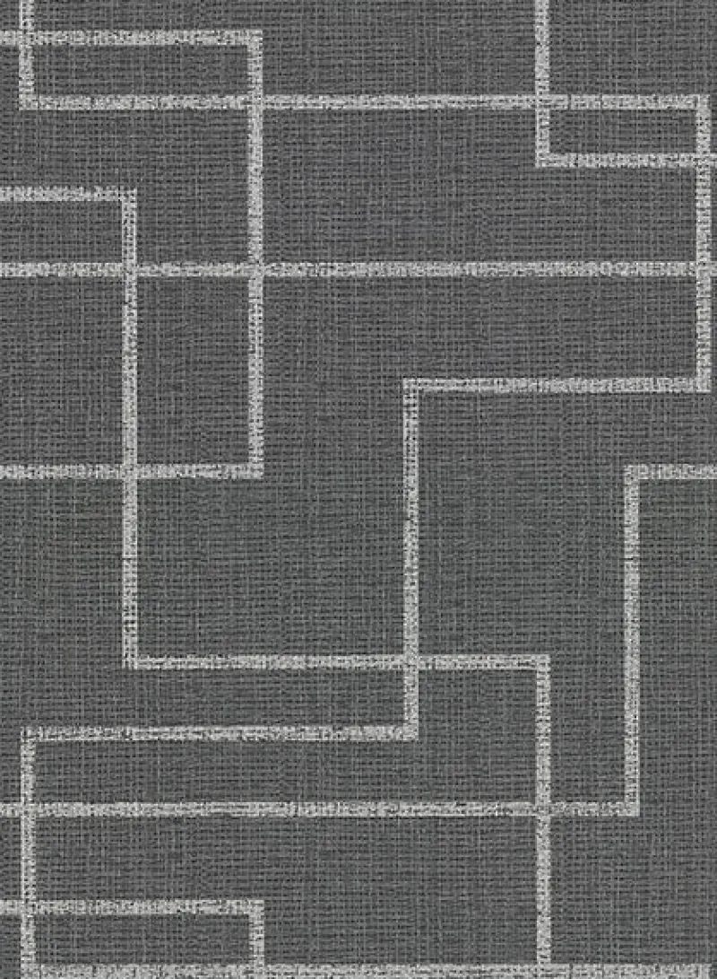 An edgy take on a classic woven texture, this charcoal faux grasscloth has a sleek appeal. With its shining silver geometric feature, this wallpaper will look stunning on walls. Clarendon is an unpasted, non woven fabric back vinyl wallpaper.