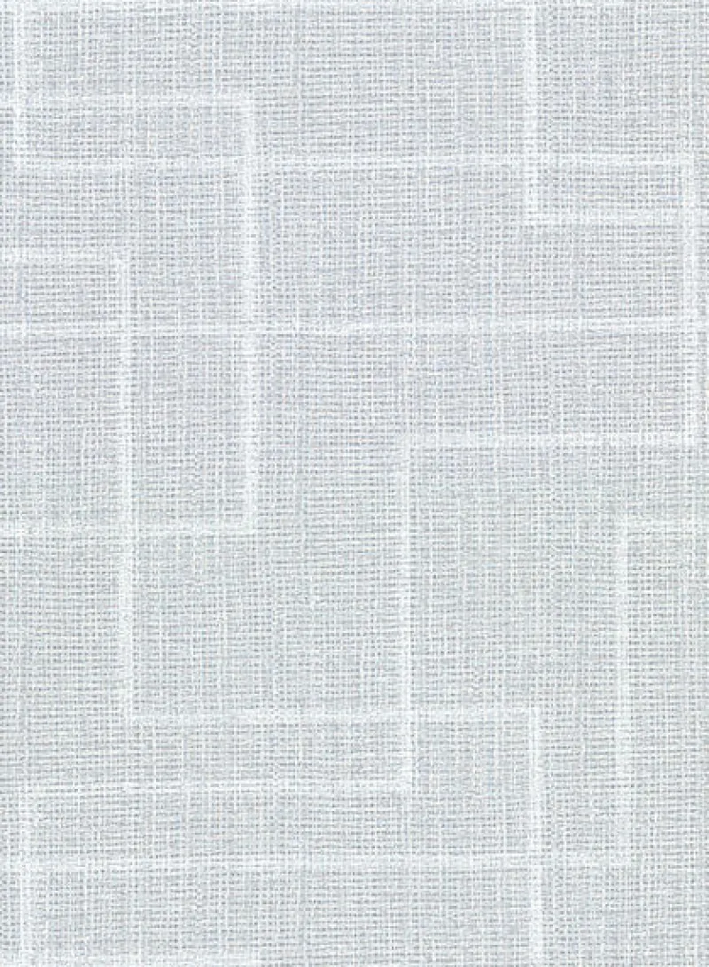 An intricate woven pattern features grey, and aqua hues. Complete with a white geometric design, this timeless print is perfect for any space. Clarendon is an unpasted, non woven fabric back vinyl wallpaper.