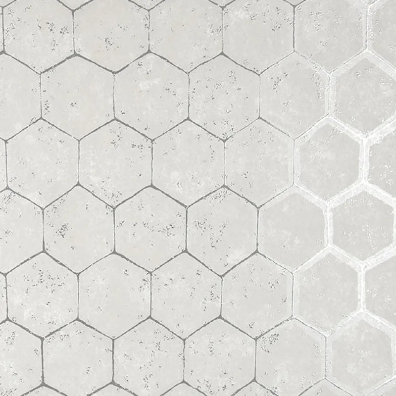 Refresh any space with this crisp geometric design. Hosted on a distressed cream backdrop, its stunning honeycomb design dazzles in a silver raised ink. Starling is an unpasted, non woven wallpaper.